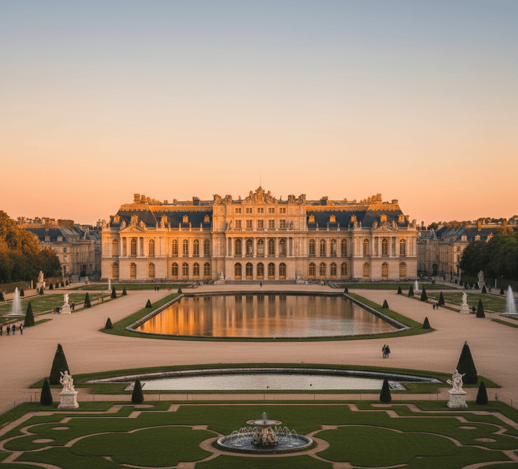 The principal residence of the French King Louis XIV from 1682 until the start of the French Revolution. The palace is renowned for its sheer scale, opulent Baroque interiors, and the meticulously maintained French formal gardens, which include canals, fountains, and the Trianon estates.